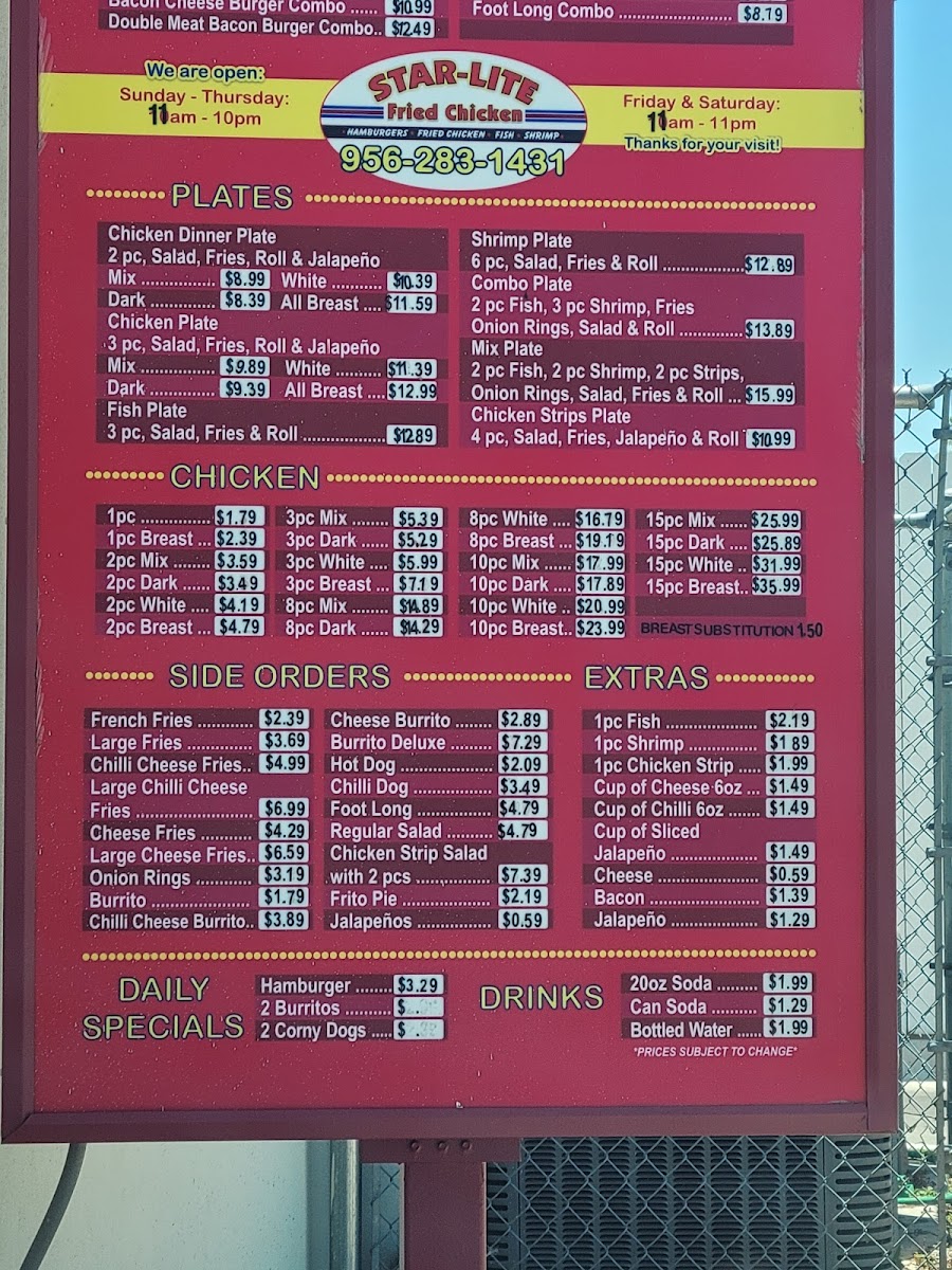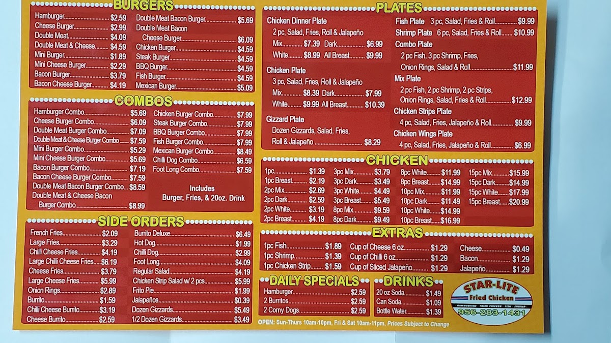 Introducing the menu at Star-Lite Fried Chicken, nestled in the heart of San Juan, TX, promises a delightful culinary journey. Known for its crispy fried chicken, this spot has quickly become a local favorite, earning praise for both quality and friendly service.